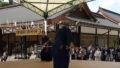 熱田神宮で行われた名古屋まつり協賛 第64回日本古武道大会に参加しました。尾張貫流槍術の五行之形と一人遣い、柳生新陰流の三学円の太刀、燕飛、静流自在剣を奉納いたしました。